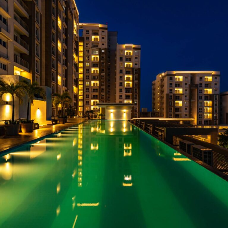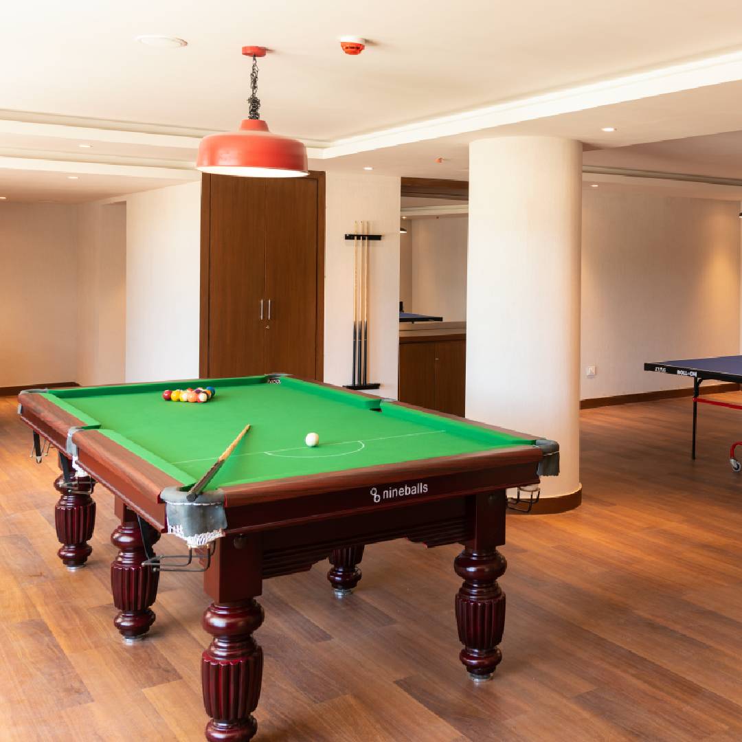 Swimming pools with separate kids’ pools & sun decks, fully equipped gymnasium,, badminton courts, cricket net, children’s tot lot area, jogging tracks, indoor games facilities, TV/home theater room, party/banquet hall