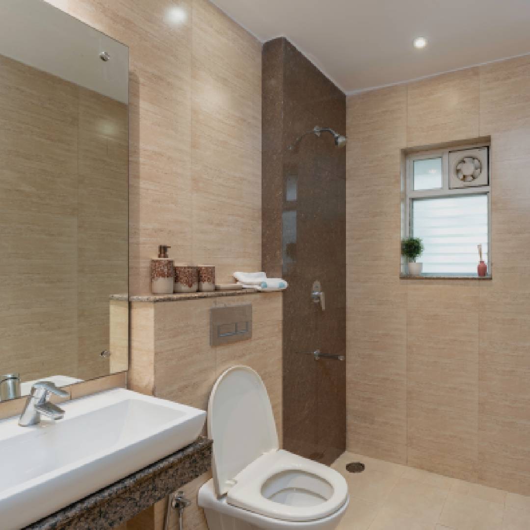 - WC: European water closet of Kohler/ Roca/equivalent make. Concealed cistern & health faucet will also be provided.
